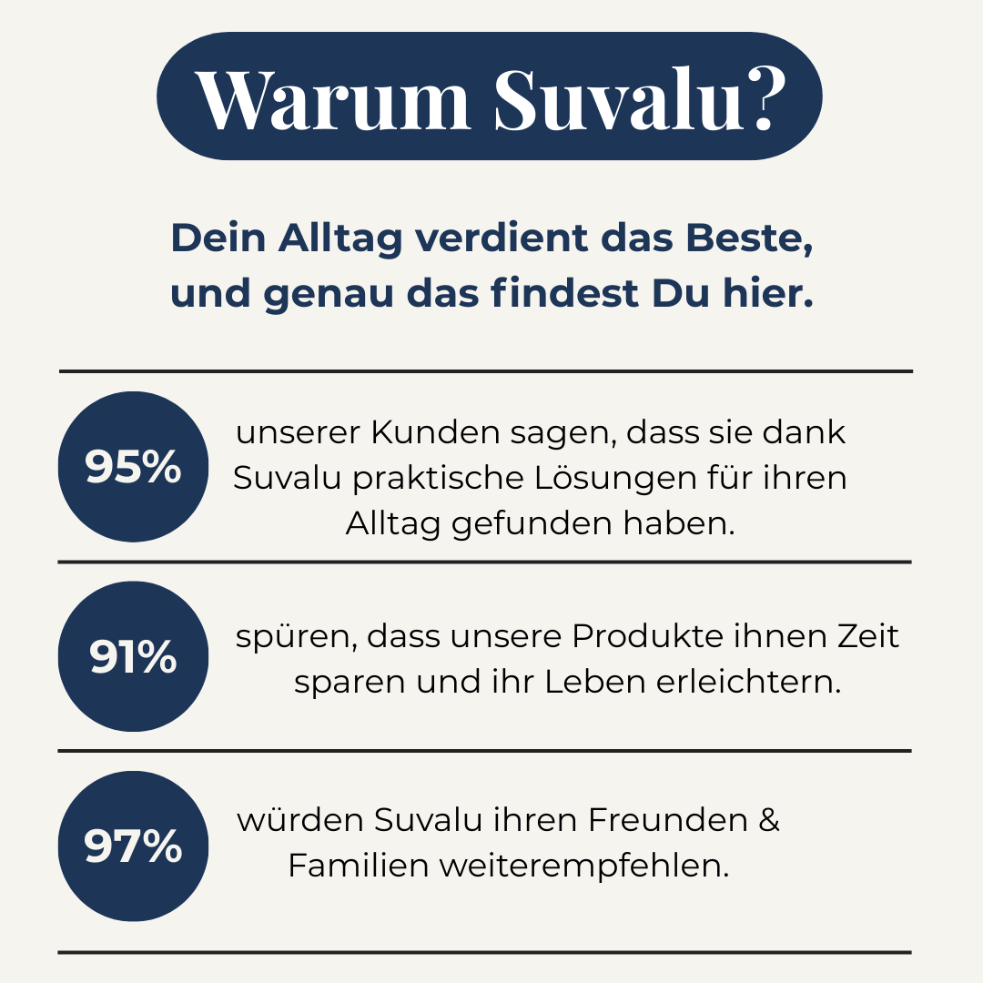 „Suvalu ist für mich mittlerweile eine feste Adresse, wenn es um coole Lösungen für den Alltag geht. Schneller Versand und top Qualität.“