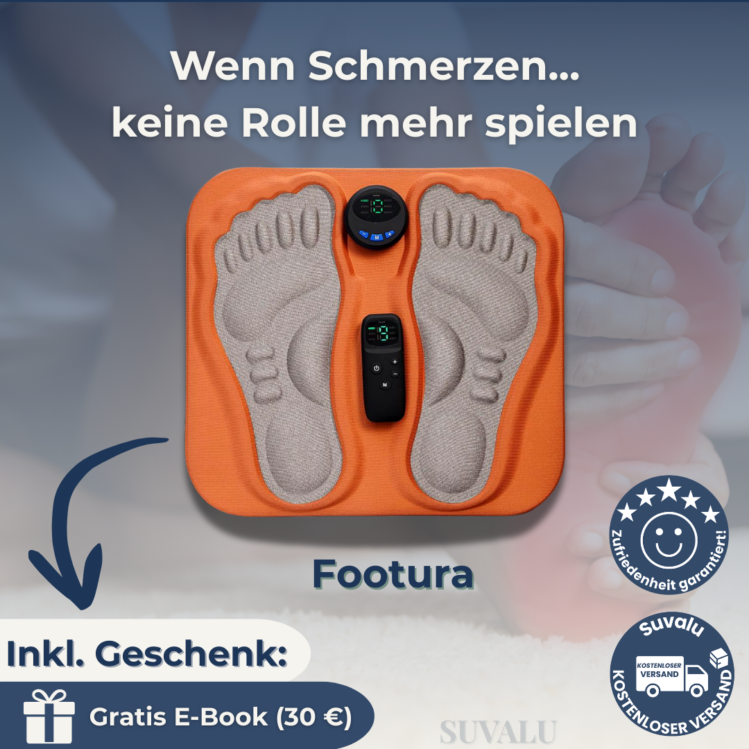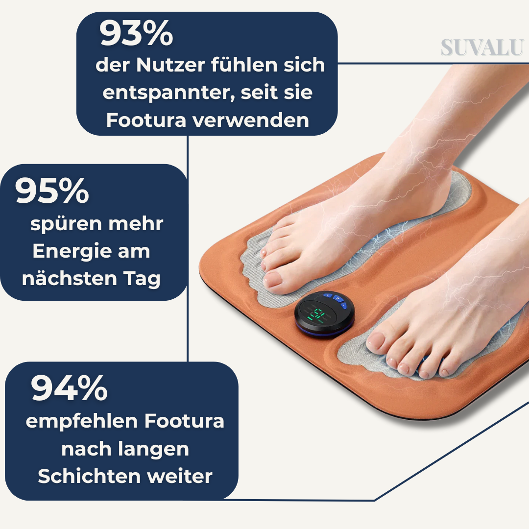 Footura vertreibt Schmerzen, hebt die Laune und schenkt deinen Füßen neue Kraft – ideal für deine langen Tage.
