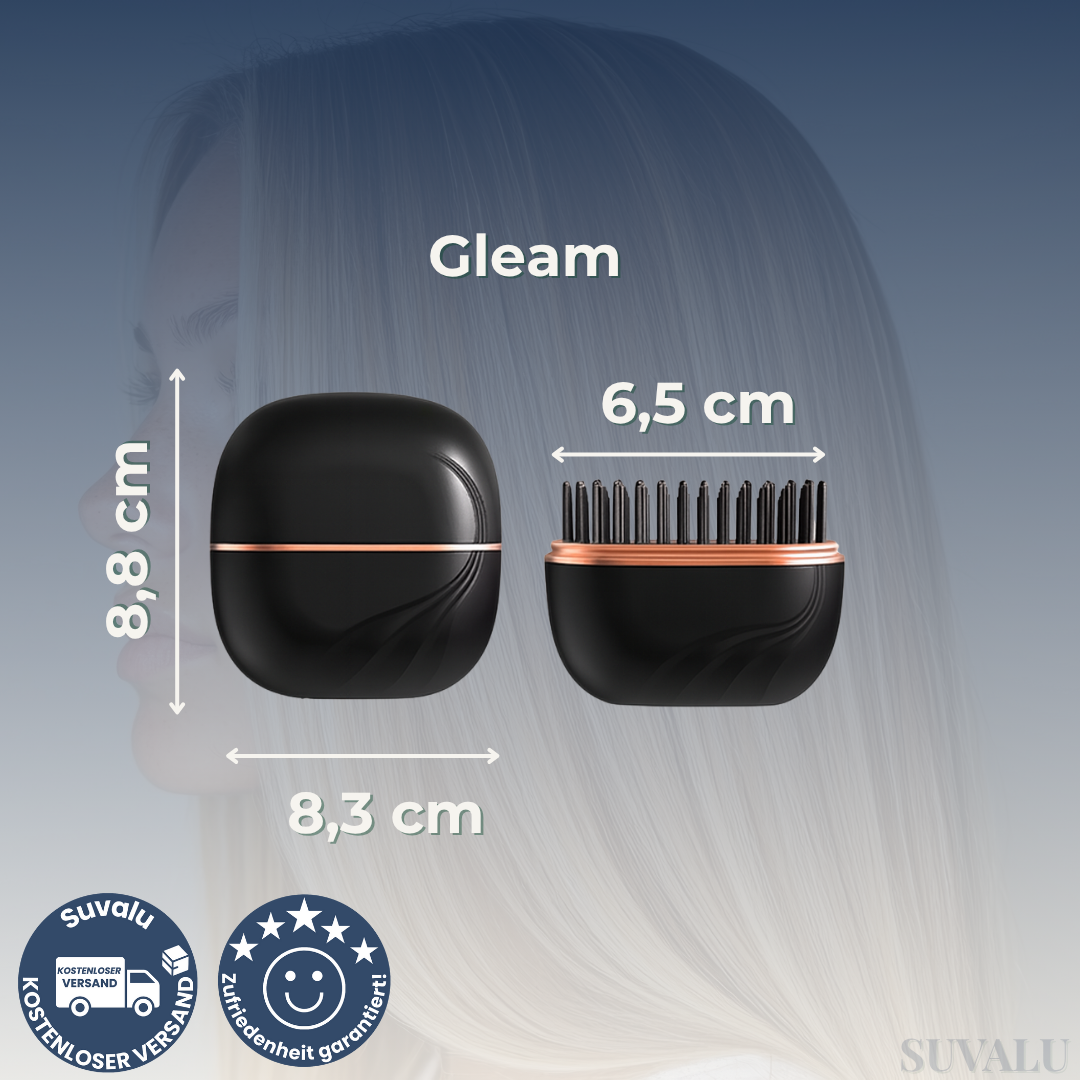Gleam ist leicht, handlich und passt in jede Tasche – ideal für Reisen oder spontane Stylings.