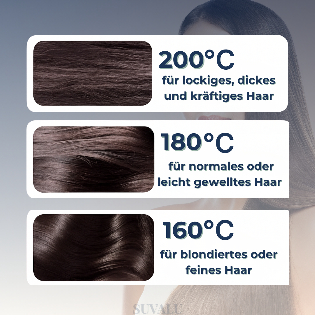 Passe die Temperatur ganz einfach an deinen Haartyp an, egal ob fein, normal oder dick.