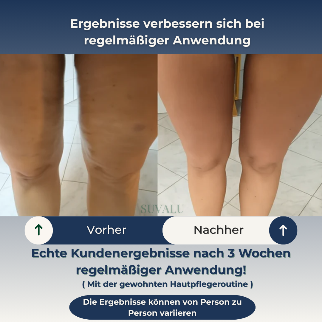 „Ich war echt skeptisch, aber nach zwei Wochen täglicher Anwendung sehe ich schon einen Unterschied. Meine Oberschenkel fühlen sich viel glatter an.“