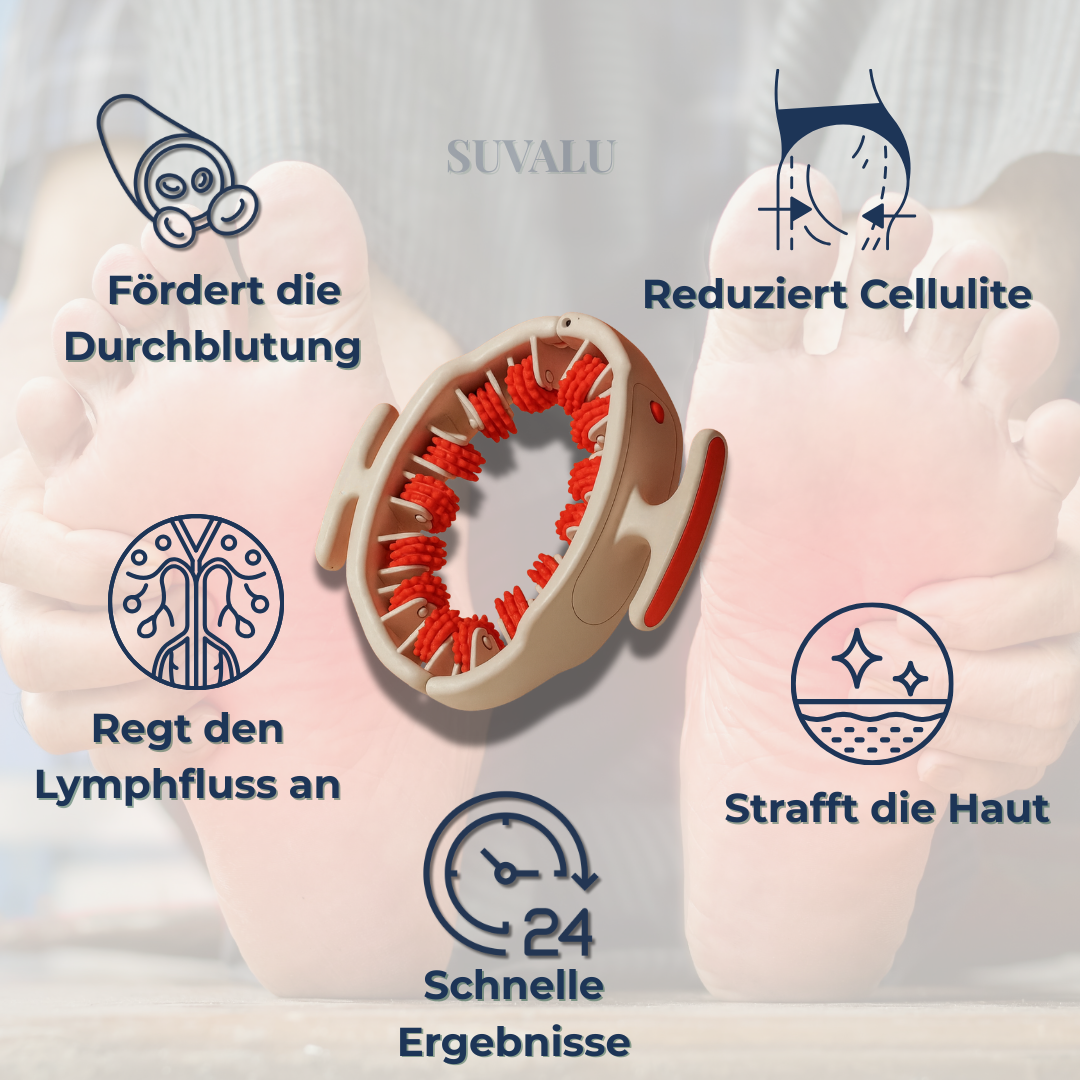 Roll 3-5 Minuten täglich mit Deinem CelluGlow über deine Haut: Er boostet die Durchblutung, baut Fettdepots ab und strafft. Laut Journal of Cosmetic Dermatology (2024) reduzieren solche Massagen Cellulite um 65% in 6 Wochen. Dein CelluGlow aus medizinischem Silikon ist langlebig, ergonomisch und unschlagbar.