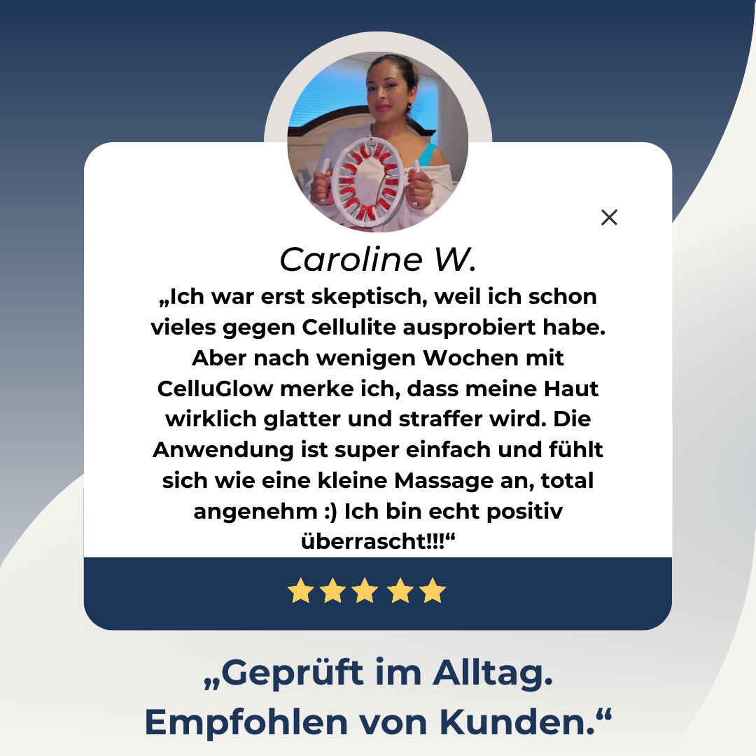 CelluGlow ist nicht nur ein Beauty-Tool, sondern auch ein Geschenk, das von Herzen kommt. Es zeigt, dass dir ihr Wohlbefinden wichtig ist und du ihre Wünsche nach mehr Selbstbewusstsein und glatterer Haut verstehst. Statt einer typischen Geschenkidee, die schnell in der Schublade landet, wird CellulGlow regelmäßig genutzt und begleitet sie auf dem Weg zu straffer Haut und mehr Selbstliebe. Eine Kombination aus Wirkung, Einfachheit und Achtsamkeit und damit ein Geschenk, das wirklich Bedeutung hat.