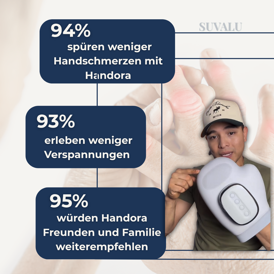 „Nach langen Tagen im Büro hatte ich immer müde Hände. Handora mit der Wärmefunktion ist für mich eine echte Wohltat, endlich richtige Entlastung!!“