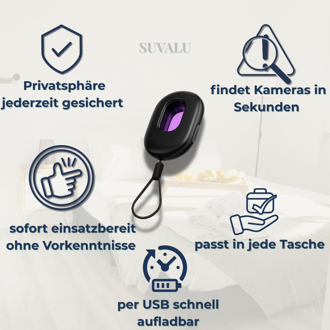 SpyGuard deckt zuverlässig versteckte Kameras auf, egal ob im Hotel, Airbnb oder unterwegs.